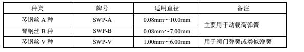 钢丝的种类有 3 种,其牌号及适用直径见表 1。